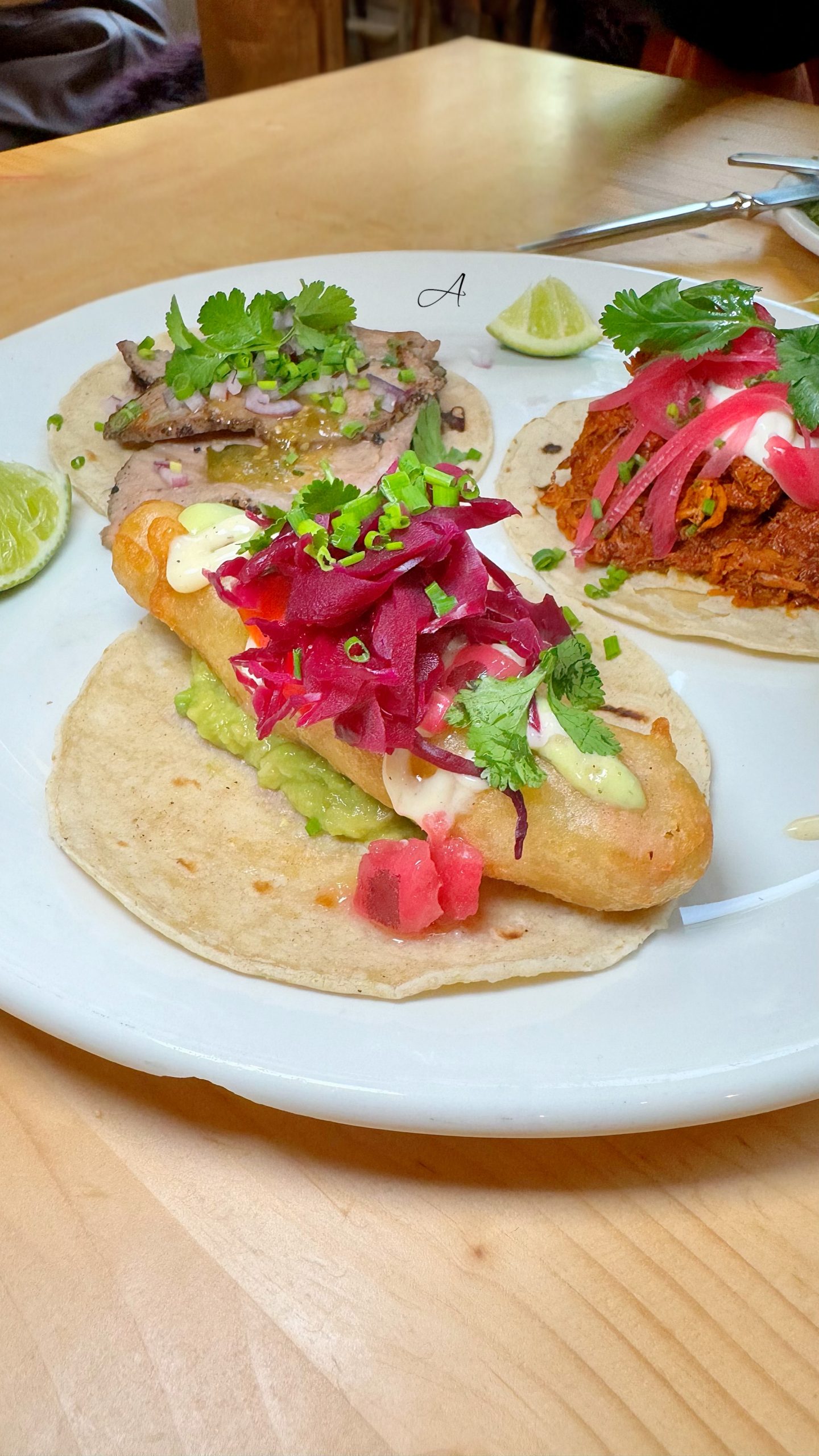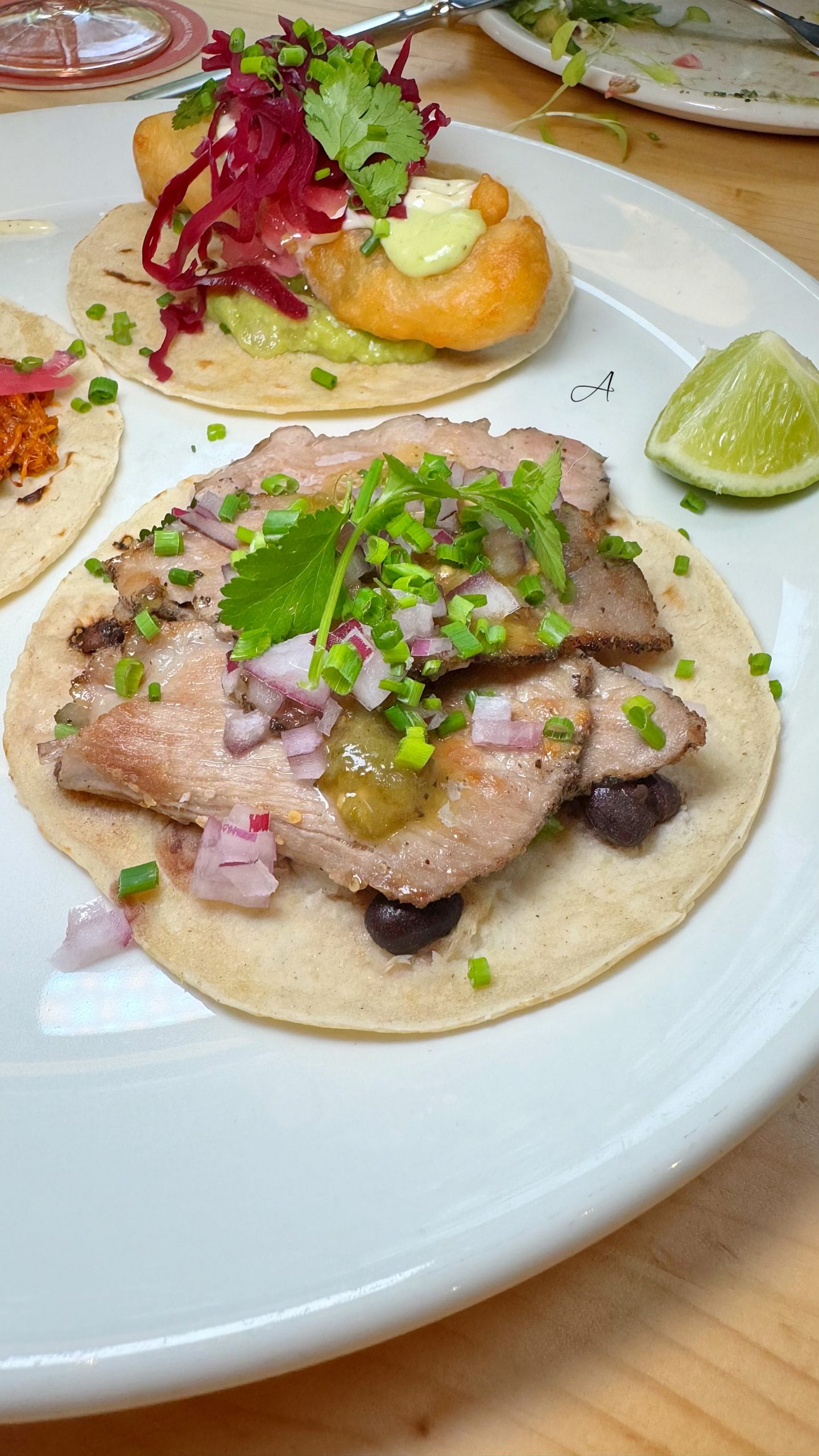 Cerdo marinado con chiles y naranja, crema de lima y cebolla roja encurtida (8,90 €). Sabores clásicos de la gastronomía mexicana que no defraudan.