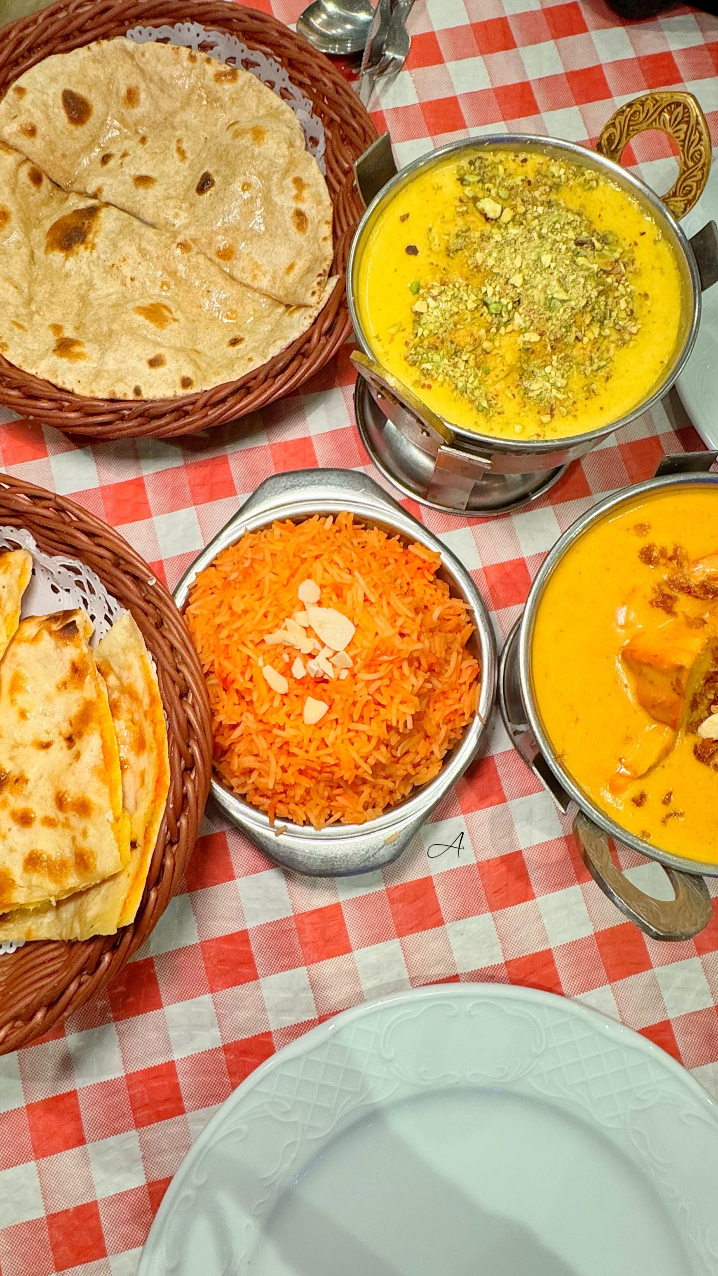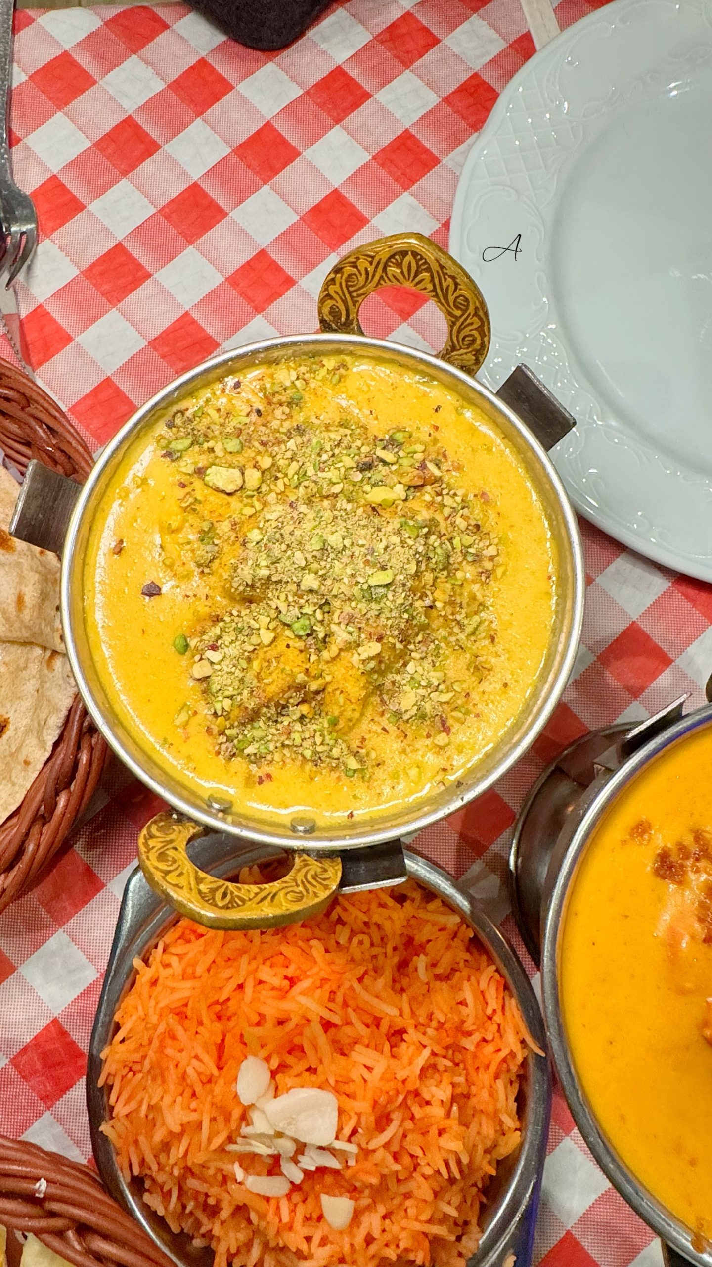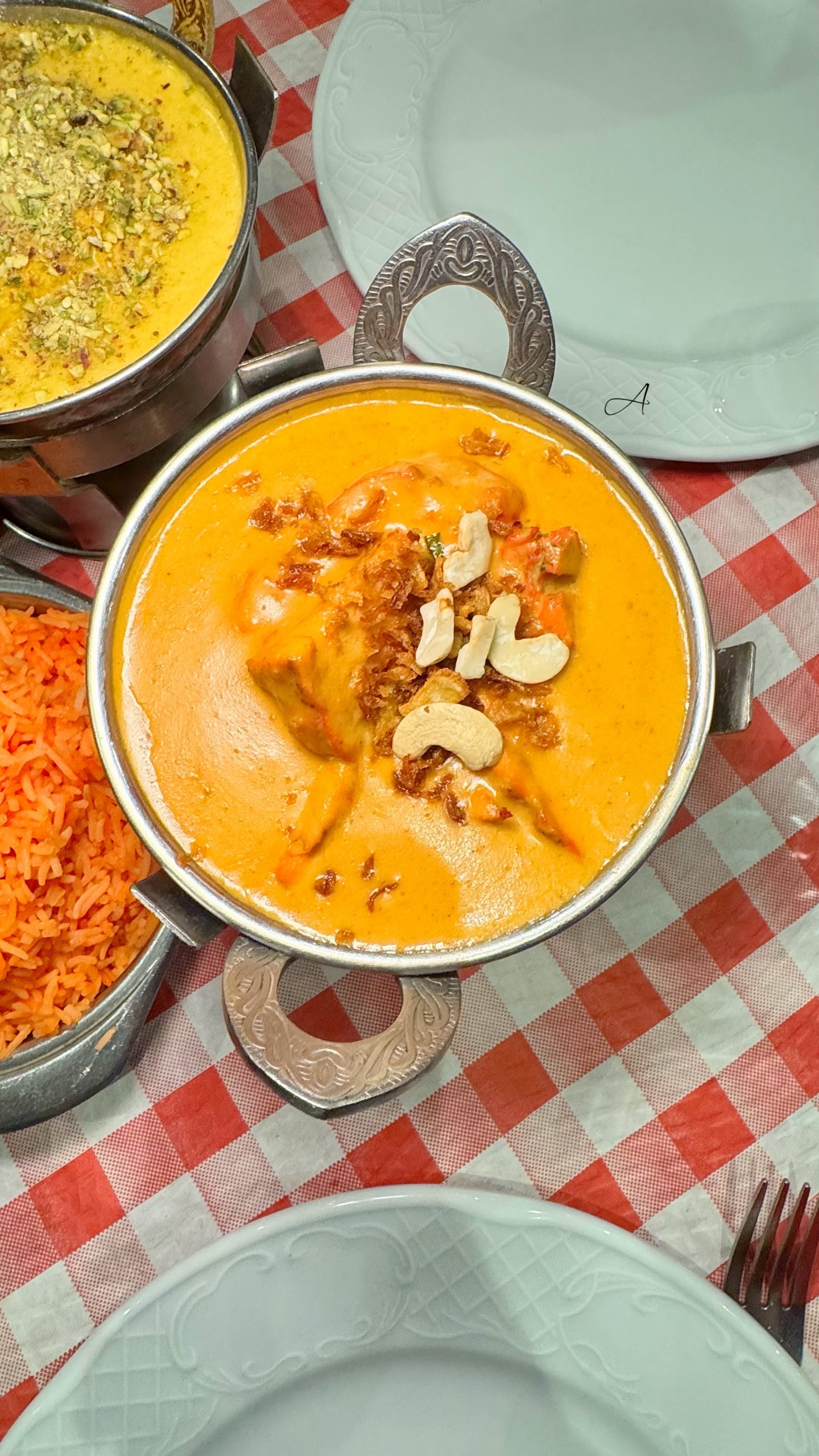 Un plato típico del norte de la India preparado con crema fresca, almendras, pistachos y especias selectas. Sabor suave, aromático y equilibrado. Repetiría sin dudarlo.