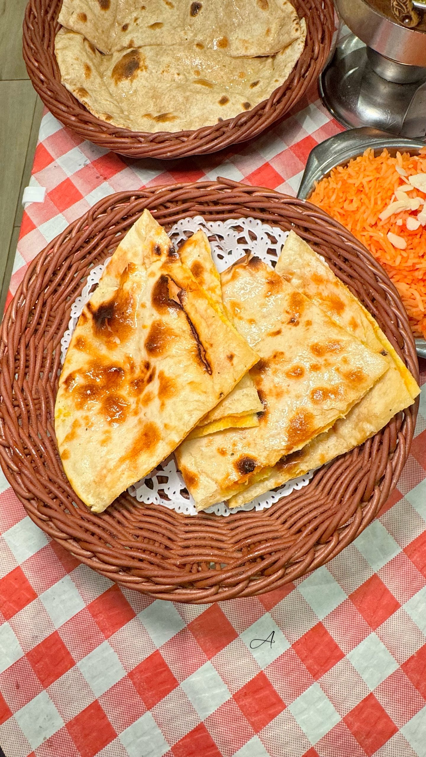 Pan indio de harina extrafina, horneado en horno tandoor y con su característico relleno dulce. Siempre un acierto para mí, que me encanta este tipo de Naans dulces.