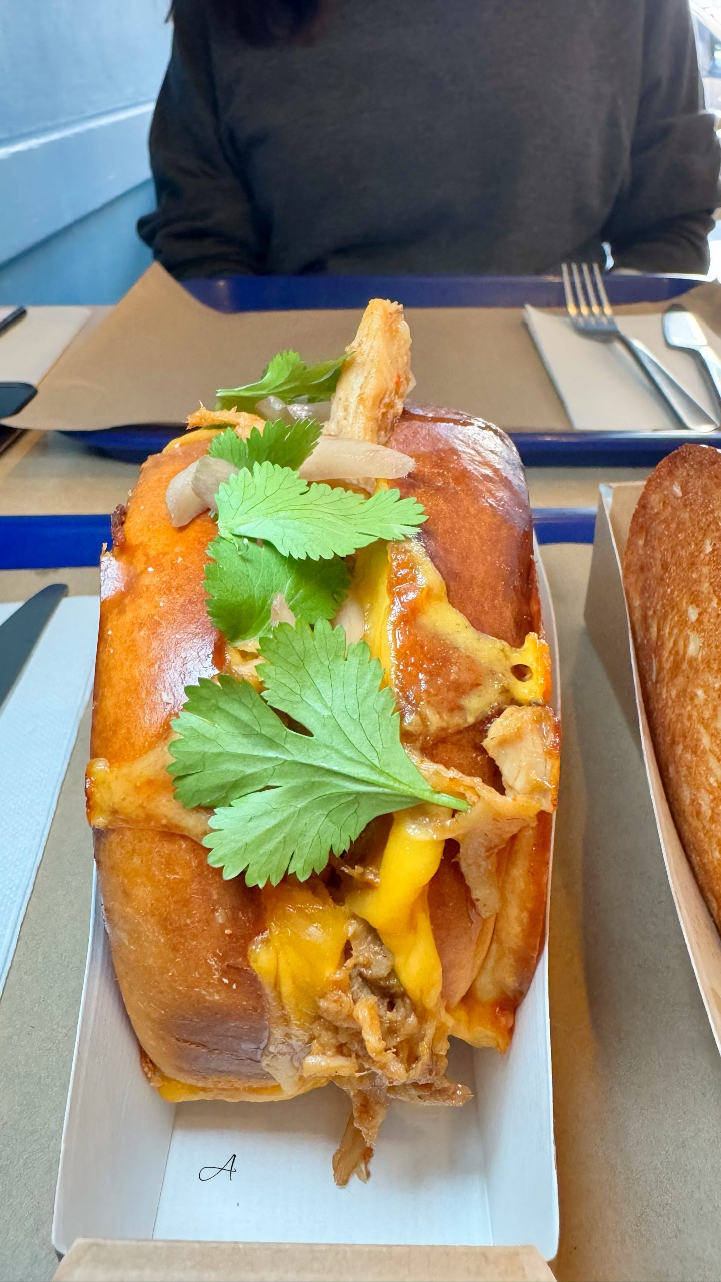Los rolls son el alma del proyecto. El sorprendente Le Chic Roll destaca por una carrillera de res cocinada a baja temperatura, melosa y profunda, acompañada de queso fundido que aporta untuosidad sin eclipsar el conjunto. Es un bocado bien elaborado, casi de bistrot, metido en formato street food.