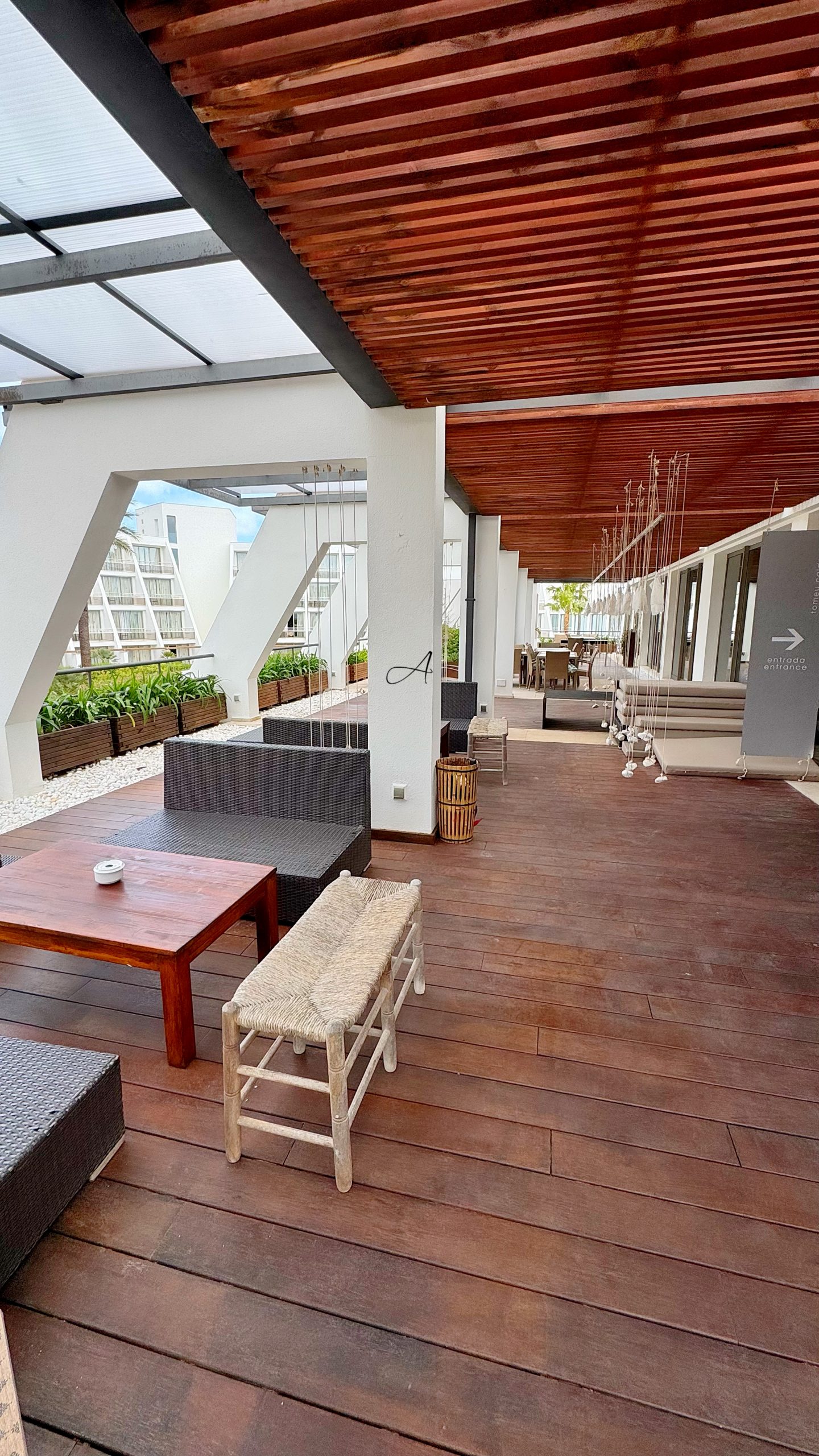 ✅ Tiene una terraza enorme, con sofás y zonas de descanso para tomarte un vermut antes o una copa después de comer. Ofrecen vistas despejadas frente al Hotel Protur de 4*.