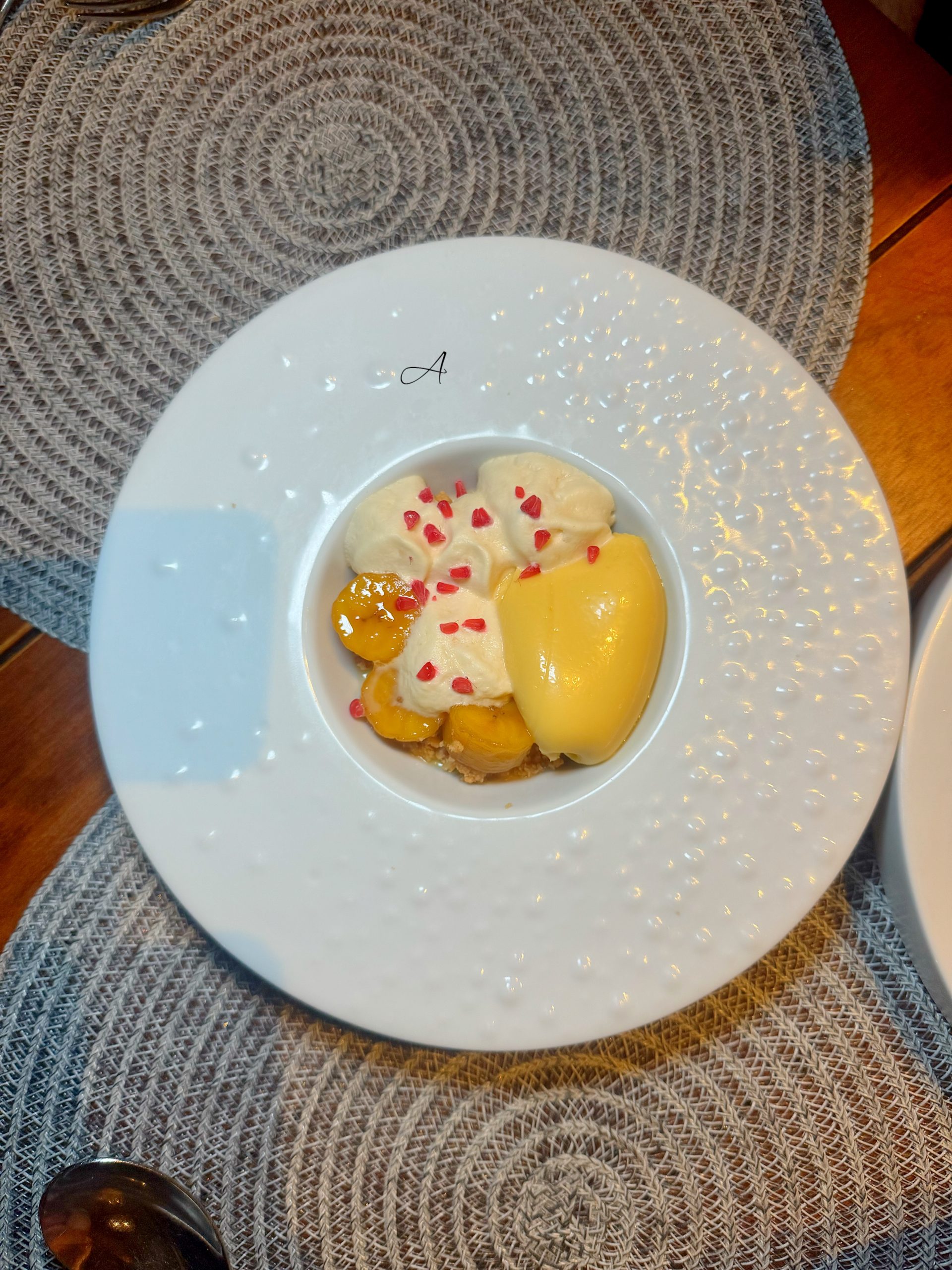 - Chocolate pasión (8,20€). Ganache de chocolate blanco, fruta de la pasión, galleta de almendra y espuma de toffee. Perfecta para los más golosos. (Plato de carta)
