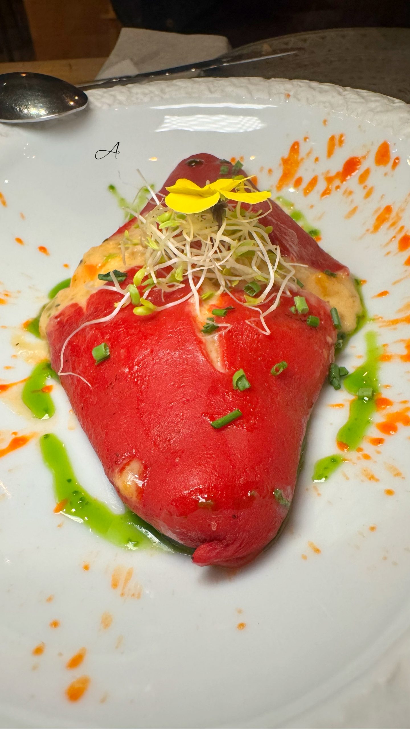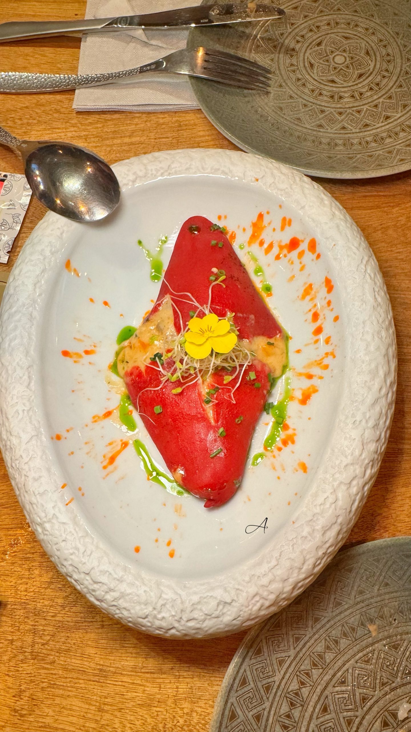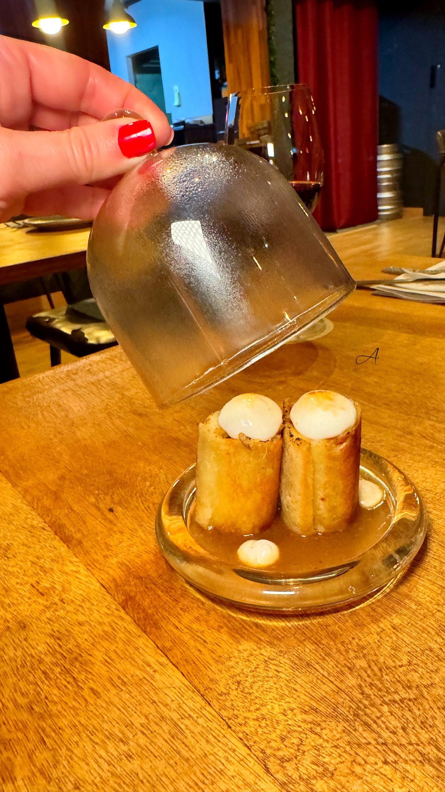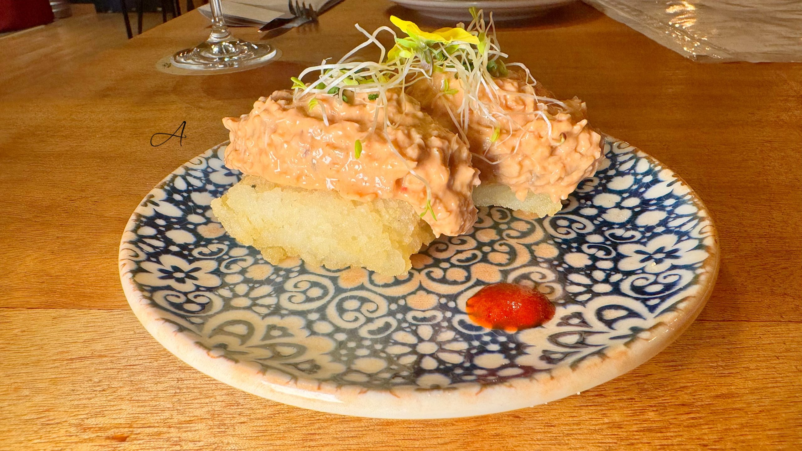 La carta completa la tienes al final del artículo, pero te dejo algunos imprescindibles de mi visita. Aviso: me quedaron pendientes platos muy tentadores como la ensaimada de chorizo asturiano y queso mahonés, la gamba carabinera o las vieiras con cremoso de coliflor y almíbar de piparrana. Motivos más que suficientes para volver.
