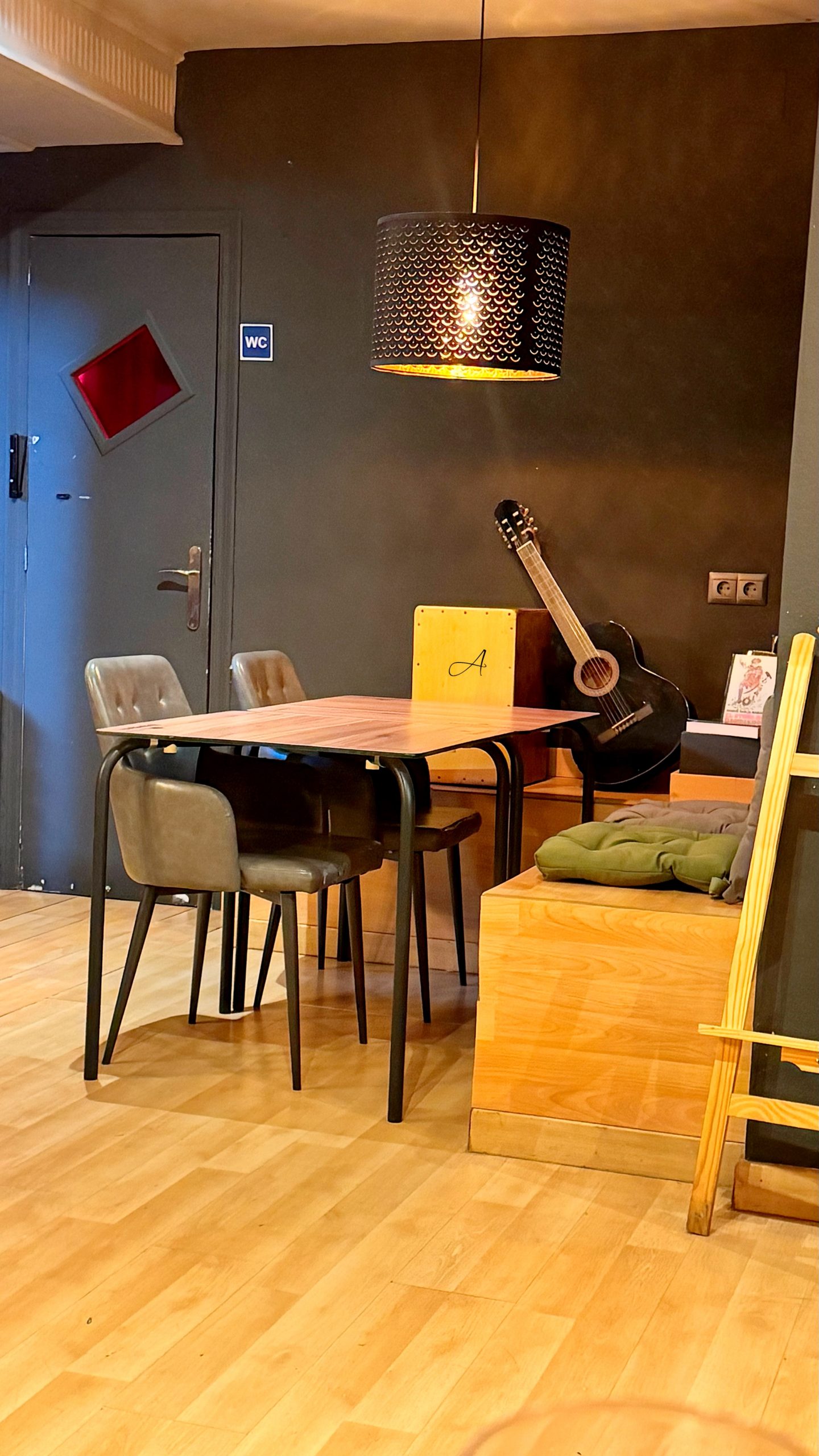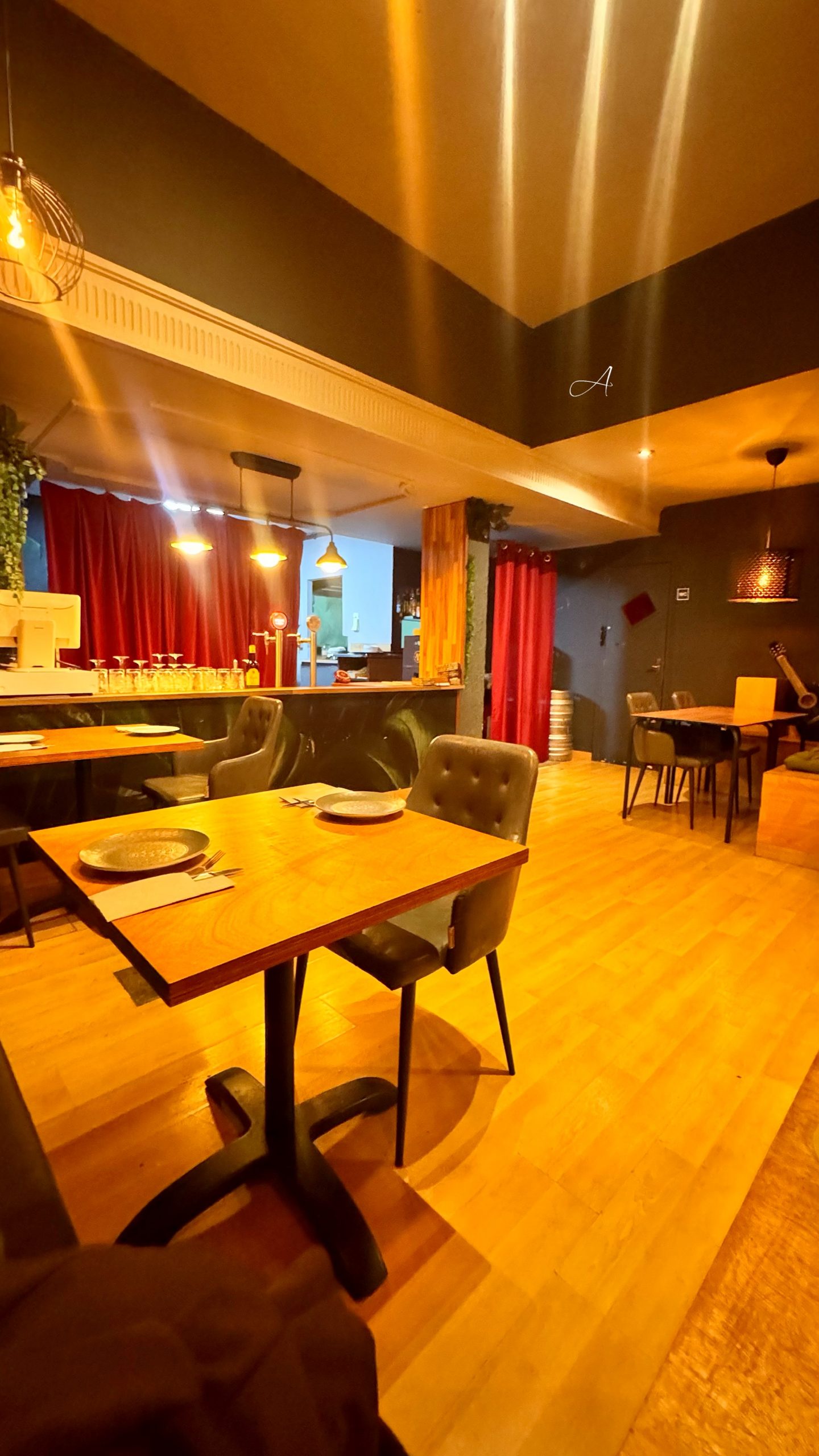 El local es acogedor, con luz tenue y guiños andaluces, un cuadro de Sevilla, una guitarra española, que aportan calidez sin excesos.